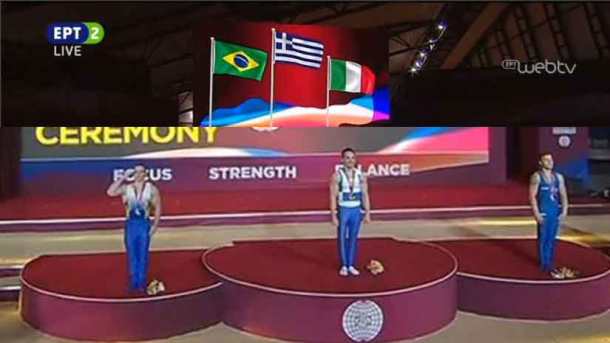 Ο Έλληνας αθλητής άκουσε για μία ακόμη φορά τον ελληνικό εθνικό ύμνο, με την ελληνική σημαία να υψώνεται στο πιο υψηλό σημείο και τον ίδιο στο πρώτο σκαλί του βάθρου, επιβεβαιώνοντας την παγκόσμια «κυριαρχία» του στους κρίκους.
