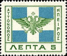 Η σημαία της «Αυτόνομης Δημοκρατίας της Βορείου Ηπείρου» σε γραμματόσημο