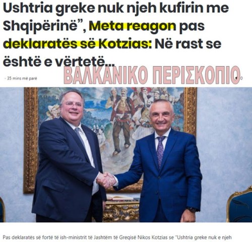 Μετά την ηχηρή δήλωση του πρώην υπουργού Εξωτερικών της Ελλάδας Νίκου Κοτζιά, ότι «ο ελληνικός στρατός δεν αναγνωρίζει τα σύνορα με την Αλβανία», έρχεται η απάντηση του προέδρου της χώρας, Ιλίρ Μέτα.