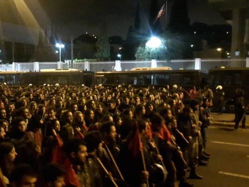 Φοιτητικοί σύλλογοι, φορείς, κόμματα κι οργανώσεις της Αριστεράς, σωματεία και συλλογικότητες του αντιεξουσιαστικού χώρου συγκεντρώθηκαν στην Πλατεία Κλαυθμώνος και κατευθύνθηκαν προς την αμερικάνικη πρεσβεία.
