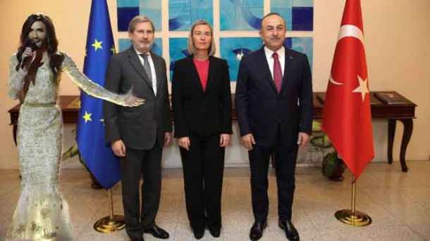 Συγκεκριμένα η επίτροπος επί των εξωτερικών υποθέσεων της Ευρωπαϊκής Ένωσης, γνωστή μας και η εξαιρετέα, κύρια Federica Mogherini, (την θυμάστε πως χαμογελούσε ευχαριστημένη στην τελετή της υπογραφής της συνθήκης των Πρεσπών) και ο επίτροπος υπεύθυνος για την διεύρυνση, Johannes Hahn, πήγαν στην τουρκική πρωτεύουσα και μάλιστα έδωσαν και κοινή συνέντευξη τύπου με τον Τσαούσογλου επαινώντας την Τουρκία και δηλώνοντας πες επιθυμούν μια… δυνατή Τουρκία, στρατηγική εταίρος, σαν μέλος της Ευρωπαϊκής Ένωσης!!!