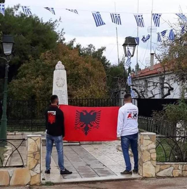 Οι Αλβανοί έχουν αναρτήσει στο Facebook φωτογραφίες από τη Θεσπρωτία όπου προσπαθούν να κατεβάσουν την ελληνική σημαία από ένα ιστορικό μνημείο και να τοποθετήσουν την αλβανική.