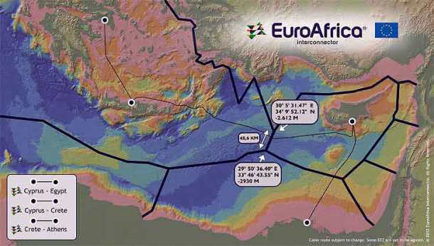 Στα ίδια δημοσιεύματα, αναφέρεται ότι «σύμφωνα με τον Αιγύπτιο εμπειρογνώμονα, η διαδρομή του καλωδίου στη θαλάσσια περιοχή μεταξύ Κύπρου και Κρήτης θα φτάσει σε ορισμένα σημεία σε βάθος 3.000 μέτρων, ενώ η εν λόγω καλωδιακή ηλεκτρική διασύνδεση των τριών χωρών συνολικού μήκους 1707 χιλιομέτρων, αναμένεται να μεταμορφώσει την Αίγυπτο σε ενεργειακό κόμβο για την αφρικανική ήπειρο και σε φορέα ηλεκτρικής ενέργειας προς τις ευρωπαϊκές χώρες».