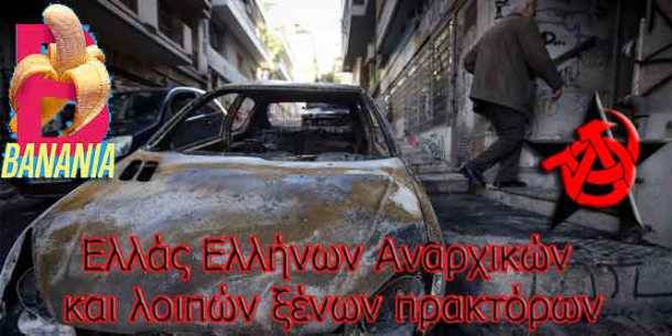 Κατεστραμμένα πεζοδρόμια, καμένα αυτοκίνητα και κάδοι απορριμμάτων.