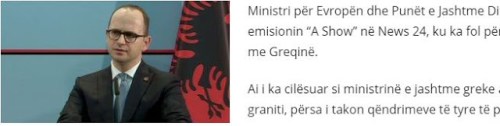 Ο υπουργός Εξωτερικών της Αλβανίας, καλεσμένος στο τηλεοπτικό κανάλι «News24» μίλησε για τις δυσκολίες με τις διαπραγματεύσεις με την Ελλάδα.