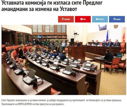 Όλα τα σχέδια των τροπολογιών στις συνταγματικές αλλαγές έλαβαν την υποστήριξη των μελών της Επιτροπής Συνταγματικών Υποθέσεων. Οι βουλευτές του VMRO-DPMNE απείχαν από την ακρόαση.