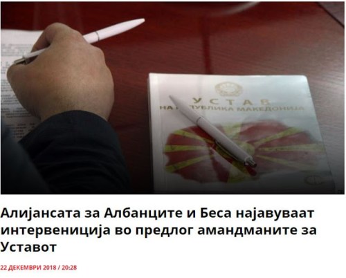 Η Συμμαχία των Αλβανών, θα καταθέσει την πρότασή της στην τροπολογία 34, απαιτώντας να μην υπάρξει «συσσώρευση» των εθνοτικών κοινοτήτων με την ονομασία ως ‘Μακεδόνες’, ζητώντας τη διαφοροποίηση των άλλων κοινοτήτων.