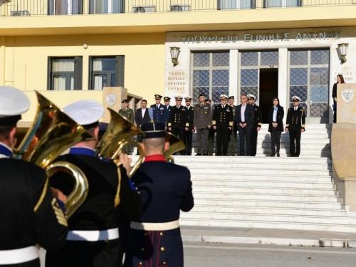 Τα χριστουγεννιάτικα κάλαντα είπαν στην πολιτική και στρατιωτική ηγεσία του υπουργείου Εθνικής Άμυνας.Αρχικά τα κάλαντα παιάνισε το Μικτό Τμήμα Στρατιωτικής Μουσικής ενώπιον του αναπληρωτή υπουργού Εθνικής Άμυνας, Παναγιώτη Ρήγα, σύσσωμης της στρατιωτικής ηγεσίας και της ειδικής γραμματέως του υπουργείου, Καλλιόπης Παπαλεωνίδα.