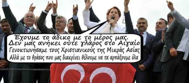 Η Μεράλ Ακσενέρ κατηγόρησε τον Τούρκο πρόεδρο και την κυβέρνηση, ότι «δεν βγάζουν άχνα στον ασύδοτο», όπως είπε Έλληνα αρχηγό του Γενικού Επιτελείου.