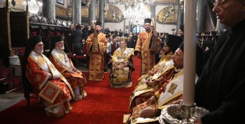 Μετά το Ιερό Ευαγγέλιο, ο Αρχιγραμματέας της Αγίας και Ιεράς Συνόδου, αρχιμανδρίτης Ιωακείμ, ανέγνωσε το μήνυμα του Οικουμενικού Πατριάρχου για την εορτή των Χριστουγέννων, στο οποίο επισημαίνεται ότι «Η Εκκλησία του Χριστού είναι ο τόπος της «κοινής σωτηρίας», της «κοινής ελευθερίας» και της ελπίδας της «κοινής βασιλείας», είναι ο τρόπος της βιώσεως της ελευθεροποιού αληθείας, ο πυρήν της οποίας είναι το αληθεύειν εν αγάπη».