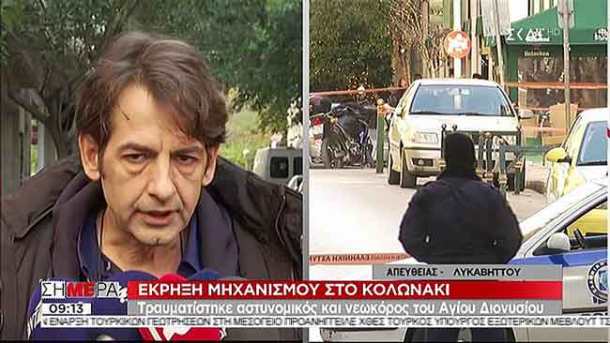 Παράλληλα επεσήμανε πως ο νεωκόρος του Αγίου Διονυσίου ενδεχομένως να μετακίνησε το μεταλλικό κουτί από την αρχική του θέση και όταν στο σημείο έφτασε ο αστυνομικός για να το ελέγξει, σημειώθηκε η έκρηξη. Μάλιστα ο ίδιος τόνισε τι σοβαρότητα του περιστατικού, την έκρηξη βόμβας στην καρδιά του Κολωνακίου.