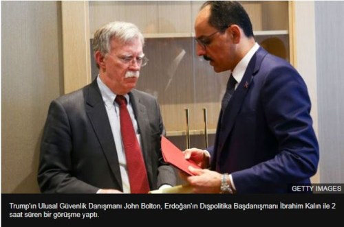 Σύμφωνα, εξάλλου, με το τουρκικό πρακτορείο ειδήσεων Anadolu, ο επικεφαλής επικοινωνίας της τουρκικής προεδρίας, Φαχρετίν Αλτούν, αναφερόμενος στις δηλώσεις του Μπόλτον δήλωσε ότι « η εθνική ασφάλεια της Τουρκίας δεν είναι διαπραγματεύσιμη». πηγη