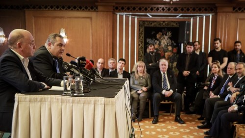 Προσκλητήριο προς πολιτικούς και πολίτες που ανήκουν στον πατριωτικό χώρο κήρυξε ο Πάνος Καμμένος σε συνέντευξη Τύπου αμέσως μετά τη συνάντησή του με τον πρωθυπουργό Αλέξη Τσίπρα στο Μέγαρο Μαξίμου όπου και υπέβαλε την παραίτησή του.