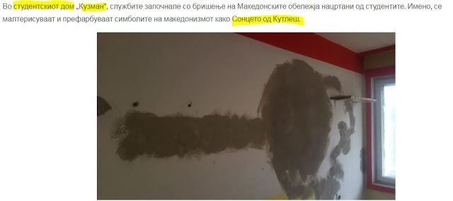 Έτσι, στον φοιτητικό κοιτώνα (φοιτητική εστία) ‘Κούζμαν’, οι υπάλληλοι άρχισαν τη διαγραφή των ‘μακεδονικών’ συμβόλων που είχαν ζωγραφίσει οι φοιτητές.
