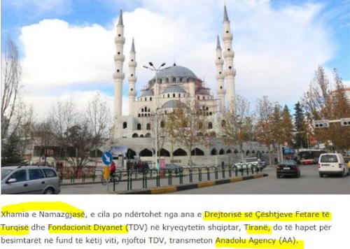 Το τζαμί Ναμαζγιάσε, το οποίο χτίσθηκε από τη Διεύθυνση Θρησκευτικών Υποθέσεων της Τουρκίας και το ίδρυμα Diyanet στην αλβανική πρωτεύουσα, Τίρανα, θα είναι ανοικτό για τους πιστούς στο τέλος του τρέχοντος έτους, όπως δημοσίευσε το τουρκικό πρακτορείο Anadolu και αναδημοσιεύεται σε πολλές αλβανικές ειδησεογραφικές ιστοσελίδες.