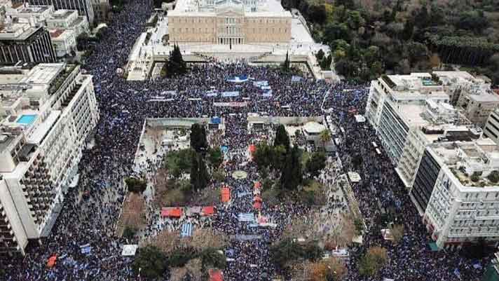 Το πλήθος φώναζε συνθήνατα για τη Μακεδονία και κατά της Συμφωνίας των Πρεσπών: