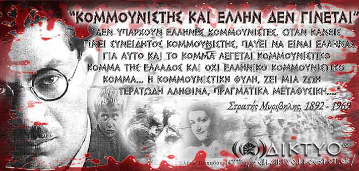 Παρατίθεται αυτούσιο το βιβλίο του Στρατή Μυριβήλη για τον ρόλο του Κομμουνιστικού Κόμματος την περίοδο 1946-1949. Πρόκειται για διάλεξη του λογοτέχνη που έλαβε χώρα το 1948, κατά τη διάρκεια δηλαδή του εμφυλίου.
