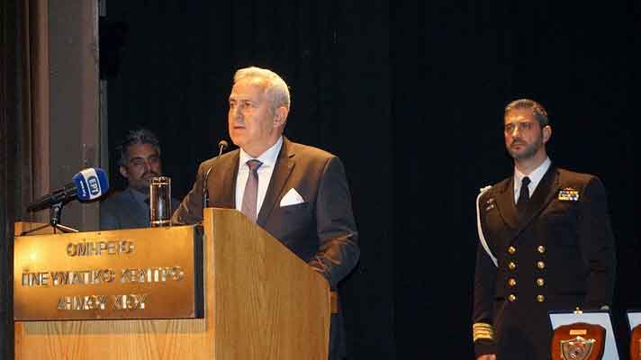 Ακολούθως παρατίθεται ο χαιρετισμός του Υπουργού Εθνικής Άμυνας στο Ομήρειο Πνευματικό Κέντρο Δήμου Χίου: