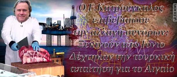 Ο υπουργός -πλέον- Εξωτερικών, Γιώργος Κατρούγκαλος επιβεβαίωσε την αλλαγή συνόρων της χώρας η οποία θα ξεκινήσει με μερική επέκταση αιγιαλίτιδας ζώνης από το Ιόνιο, εξαιρώντας το Αιγαίο, αποδεχόμενοι το πάγιο τουρκικό αίτημα περί «ειδικών συνθηκών» .