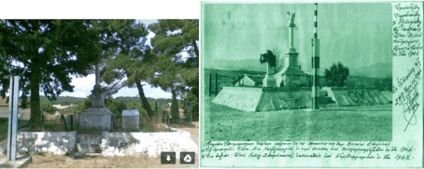 Παρακάτω φαίνεται το ίδιο μνημείο.Στην αριστερή φωτογραφία σήμερα και στη δεξιά πριν από πενήντα χρόνια.