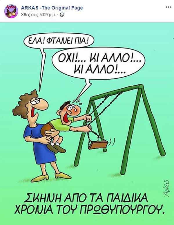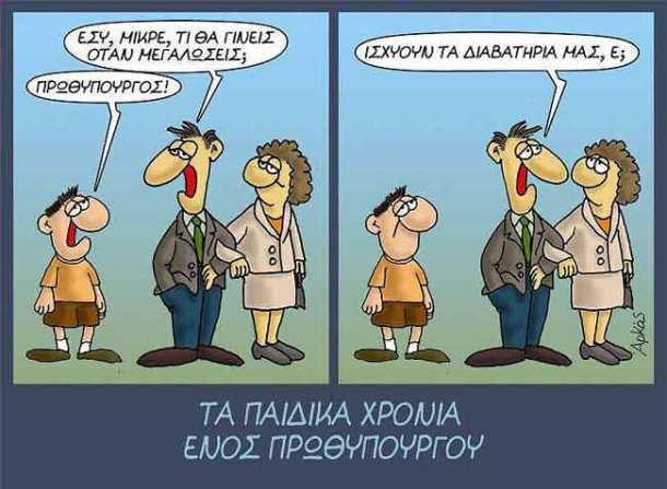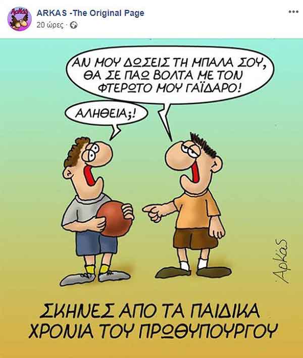 Με μια νέα σειρά σκίτσων που ξεκίνησε από χθες, Δευτέρα, ο αγαπημένος σκιτσογράφος έχει επικεντρωθεί σε «Σκηνές από τα παιδικά χρόνια ενός πρωθυπουργού» και είναι αυτό που λέει ο τίτλος: Σκίτσα από έναν πιτσιρικά με ένα «φαρμακερό» κάθε φορά μήνυμα.