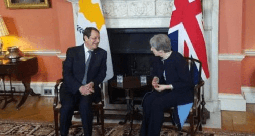 Το Κυπριακό και το Brexit ήταν τα βασικότερα θέματα συζήτησης στη συνάντηση του Προέδρου της Δημοκρατίας της Κύπρου Νίκου Αναστασιάδη και της Πρωθυπουργού του Ηνωμένου Βασιλείου Τερέζα Μέι στην Ντάουνινγκ Στριτ.