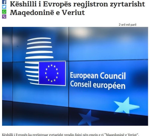 Το Συμβούλιο της Ευρώπης έχει καταγράψει επισήμως τη γειτονική χώρα με τη νέα ονομασία «Βόρεια Μακεδονία», γράφει το αλβανικό δημοσίευμα.