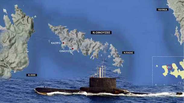 Το υποβρύχιο του Π.Ν. Ποσειδών στο βόρειο τμήμα των Οινουσσών ανάμεσα από τη Χίο και τις Οινούσσες και η Κ/Φ Πολεμιστής από το νότιο μέρος προσεγγίζουν το στενό Έγκρι Λίμαν μεταξύ των Οινουσσών και της χερσονήσου Καραμπουρούν.