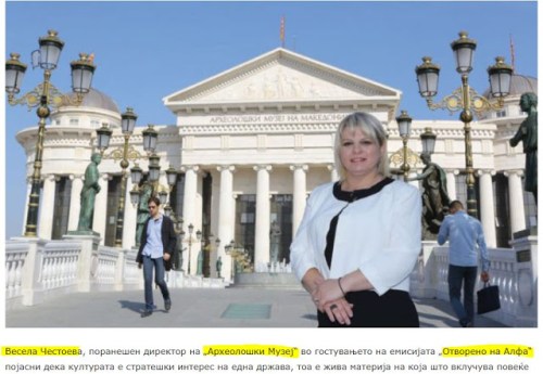 Η Βέσελα Τσεστόεβα, πρώην διεθύντρια του ‘Αρχαιολογικού Μουσείου’ σε τηλεοπτική εκπομπή ‘Άνοιγμα στην Άλφα’ διευκρίνισε ότι ο πολιτισμός αποτελεί στρατηγικό συμφέρον του κράτους, είναι ένα ζωντανό θέμα που περιλαμβάνει πολλαπλά τμήματα συμπεριλαμβανομένης της προστασίας της πολιτιστικής κληρονομιάς.