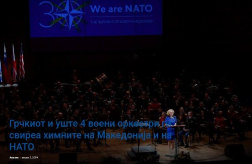 Στην Εθνική Φιλαρμονική των Σκοπίων, οι στρατιωτικές ορχήστρες της Βόρειας Μακεδονίας, των Ηνωμένων Πολιτειών, της Ελλάδας, του Ηνωμένου Βασιλείου και της Σλοβενίας, με κοινή εμφάνιση έπαιξαν ύμνους του ΝΑΤΟ και της πατρίδας μας, σηματοδοτώντας την 70η επέτειο της δημιουργίας του ΝΑΤΟ.