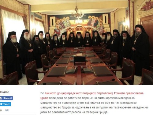 Σε επιστολή της προς τον Οικουμενικό Πατριάρχη Βαρθολομαίο, η Ελληνική Ορθόδοξη Εκκλησία, εξέφρασε την ανησυχία της στο αίτημα των αυτοαποκαλούμενων Μακεδόνων στην Ελλάδα για την πραγματοποίηση των Λειτουργιών σε ορισμένες εκκλησίες στη λεγόμενη μακεδονική γλώσσα στην ευαίσθητη περιοχή της Βόρειας Ελλάδας.