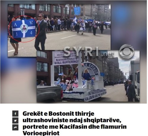 Κατά τον εορτασμό της Ημέρας της Εθνικής Παλιγγενεσίας των Ελλήνων, στην Βοστώνη των Ηνωμένων Πολιτειών της Αμερικής που έγινε χθες, η ελληνική κοινότητα εμφανίστηκε με υπερεθνικιστικά συνθήματα εναντίον των Αλβανών.
