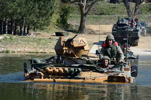 Τουρκικά άρματα μάχης και ΤΟΜΑ προσομοίωσαν «βίαιη διάβαση του ποταμού Έβρου στα σύνορα με την Ελλάδα», στο πλαίσιο στρατιωτικής άσκησης που είχε σκοπό την πληρέστερη επιχειρησιακή ετοιμότητα των τουρκικών ενόπλων δυνάμεων.