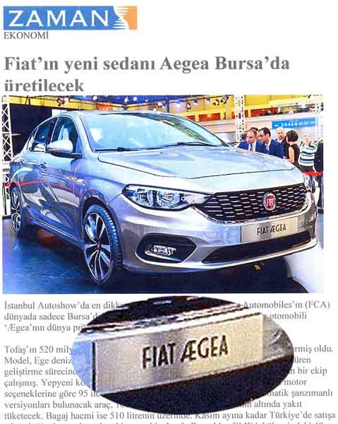 Το νέο μοντέλο, «Αιγαίο» εκτέθηκε για πρώτη φορά αυτές τις μέρες στην μεγάλη διεθνή έκθεση, İstanbul Autoshow της Κωνσταντινούπολης με μεγάλη προβολή στο όνομα Αιγαίο και είναι συμπαραγωγή της τουρκικής εταιρίας Tofas με την ιταλική Fiat Chrysler.