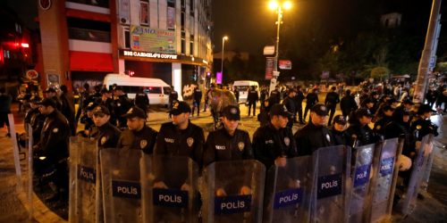 Turkish police stand guard in Kadikoy district during a protest against the High Election Board (YSK) decision to re-run the mayoral election, in Istanbul, Turkey, May 6, 2019. REUTERS/Kemal Aslan