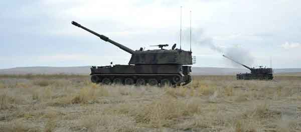 On mountains deployed light artillery support Turkish commando troops, who destroy PKK hideouts in northern Iraqi Hakurk region.