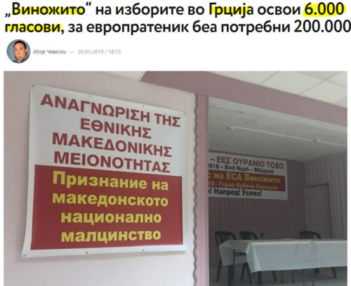 «Όπως μας εξηγούν από το «Βινοζίτο’, γνωρίζουν ότι είναι δύσκολο με αυτές τις συνθήκες στην Ελλάδα να αναδείξουν έναν ευρωβουλευτή, επειδή χρειάζονται περίπου 200 χιλιάδες ψήφους ή το 3% του συνολικού αριθμού των ψηφοφόρων», αναφέρει το σλαβικό δημοσίευμα των Σκοπίων.