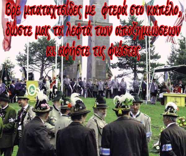 Ελπίζουμε να μας επιτρέψουν να φτάσουμε στο λόφο, όπου βρίσκεται το μνημείο των βετεράνων για να διαμαρτυρηθούμε για τη φιέστα του αίσχους και να θυμίσουμε τα φοβερά εγκλήματα του Γ´ Ράιχ, για τα οποία πρέπει, επιτέλους να αποδοθεί δικαιοσύνη!