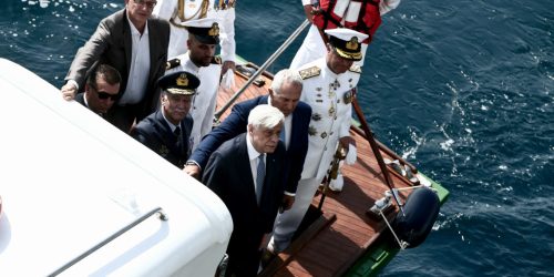 Ο ΠτΔ Προκόπης Παυλόπουλος επιθεώρησε τον Στόλο του Πολεμικού Ναυτικού σήμερα, παρουσία του ΥΕΘΑ Ευάγγελου Αποστολάκη.