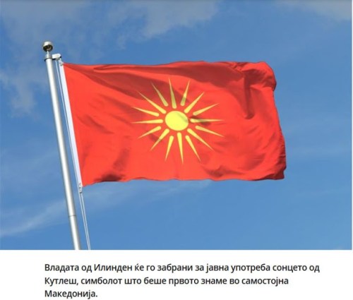 Σύμφωνα με το δημοσίευμα της εφημερίδας των Σκοπίων, Σλόμποντεν Πέτσατ, τα κυβερνητικά όργανα θα απαγορεύσουν τη δημόσια χρήση του συμβόλου του εμβλήματος των αρχαίων Μακεδόνων που ανακαλύφθηκε στη Βεργίνα της Μακεδονίας, ωστόσο δεν αποκαλύφθηκαν οι λεπτομέρειες για το πώς θα γίνει αυτό.