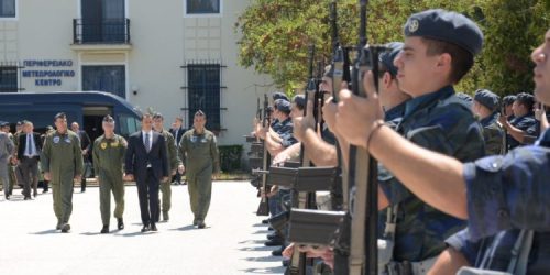 Τον Υπουργό Εθνικής Άμυνας υποδέχθηκαν ο Αρχηγός Τακτικής Αεροπορίας, Αντιπτέραρχος (Ι) Θεμιστοκλής Μπουρολιάς στο ΑΤΑ και ο Ταξίαρχος (Ι) Γεώργιος Μπόμπολης στο ΕΚΑΕ.