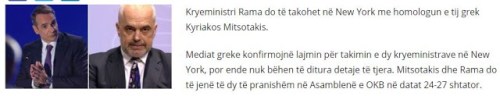 Ο πρωθυπουργός Έντι Ράμα θα συναντηθεί στη Νέα Υόρκη με τον Έλληνα ομόλογό του, Κυριάκο Μητσοτάκη.