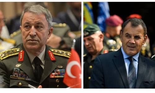 Σύμφωνα με την ανακοίνωση του τουρκικού υπουργείου Άμυνας, οΧουλουσί Ακάρ συνεχάρη τον Νίκο Παναγιωτόπουλο για την τοποθέτησή του στην πολιτική ηγεσία των ενόπλων δυνάμεων.