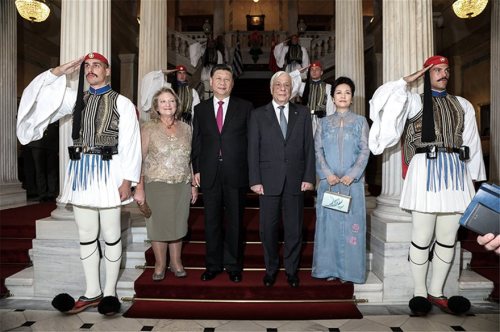 Xαμόγελα, ιδιαίτερες… χειραψίες και εντυπωσιακές εμφανίσεις «πρωταγωνίστησαν» στο επίσημο δείπνο προς τιμήν του Κινέζου Προέδρου, Σι Τζινπίνγκ, που παρέθεσε το βράδυ της Δευτέρας ο Πρόεδρος της Δημοκρατίας Προκόπης Παυλόπουλος.