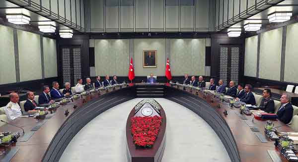 Μετά τη συνεδρία στη του Συμβουλίου Εθνικής Ασφαλείας η οποία κράτησε τέσσερις ώρες υπό την προεδρία του Τούρκου Προέδρου Ταγίπ Ερντογάν, στην ανακοίνωση που εκδόθηκε αναφέρεται ότι συζητήθηκαν περιφερειακά και διεθνή ζητήματα και ιδιαίτερα το Κυπριακό και η ανατολική Μεσόγειος.