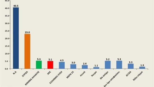 Πλήρη κυριαρχία της Νέας Δημοκρατίας στο πολιτικό σκηνικό καταγράφει νέα δημοσκόπηση της Opinion Poll. Μοναδικό αγκάθι, σύμφωνα με τη δημοσκόπηση είναι το προσφυγικό /μεταναστευτικό. Στην πρόθεση ψήφου η ΝΔ διατηρεί και αυξάνει το εκλογικό της ποσοστό στο 40,5%, ενώ ο ΣΥΡΙΖΑ περιορίζεται στο 23%, επιβεβαιώνοντας ότι σε αυτά τα επίπεδα κινείται ο σταθερός του πυρήνας στο εκλογικό σώμα.