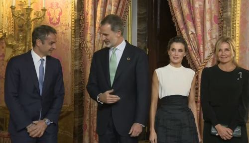Ο Κυριάκος Μητσοτάκης και η σύζυγός του, Μαρέβα Μητσοτάκη, παραβρέθηκαν στη δεξίωση που παρέθεσε ο βασιλιάς Φελίπε.