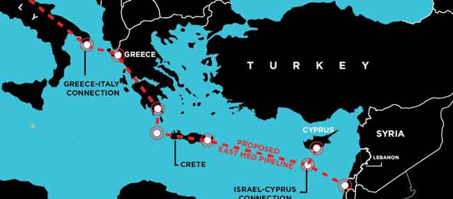 Το αέριο της Ανατολικής Μεσογείου θα κατευθύνεται υποθαλάσσια προς την Κύπρο, στη συνέχεια προς τις ακτές της Κρήτης, και ακολούθως, μέσω της Πελοποννήσου και της Δυτικής Ελλάδας, στην Ιταλία.