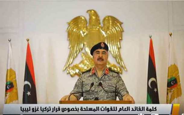 Ο στρατάρχης Χαφτάρ, που προσπαθεί από την 4η Απριλίου ν΄ανακτήσει την πρωτεύουσα της Λιβύης, κάλεσε την Παρασκευή το βράδυ σε «γενική κινητοποίηση» και «τζιχάντ» ”Ιερό πόλεμο” ενάντια σε πιθανή τουρκική στρατιωτική επέμβαση στη Λιβύη υπέρ της (GNA) που έχει έδρα την Τρίπολη.