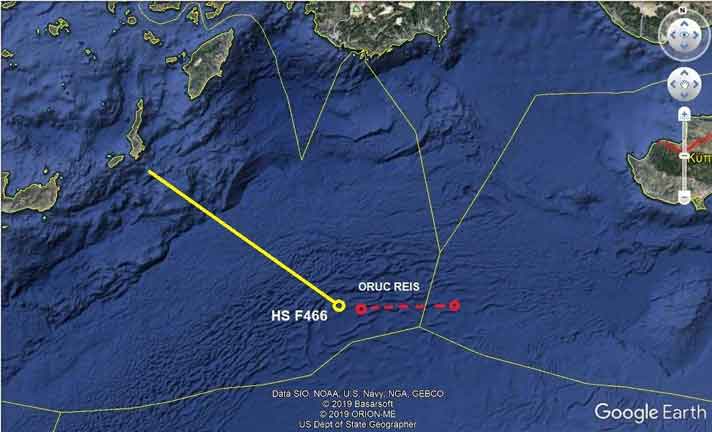 Που βρίσκεται το Oruc Reis και που η φρεγάτα Νικηφόρος Φωκάς-Χάρτης